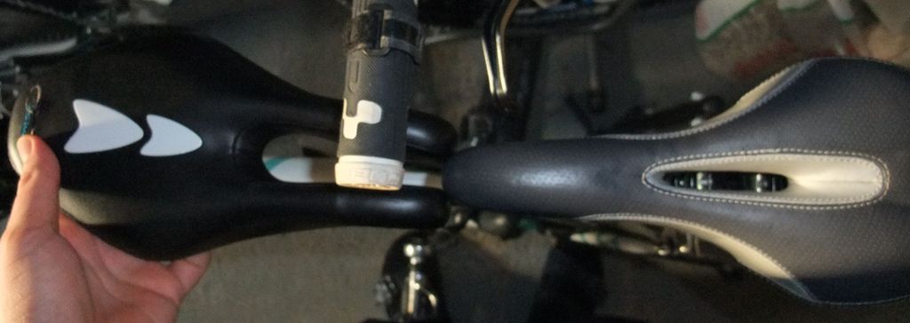 Und bzgl. neuem Sattel hier nochmal der Unterschied von meim bisherigen Sattel und von meim neuen/alten Sattel (der Graue). Ich werd wohl n Mittelding brauchen, irgendwie hat sich der graue sehr klein angefühlt. :nono