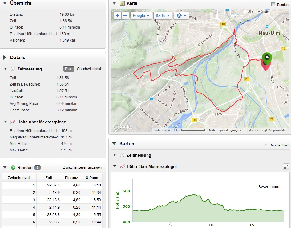 Letzendlich kamen 19 Km in 6:09 min/km raus womit ich für die hügelige Runde sehr zufrieden bin.