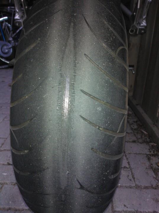 Udo braucht hinten dringend einen neuen Reifen. Bin schon 2x fast weggerutscht beim Beschleunigen aus der Kurve. :chris76