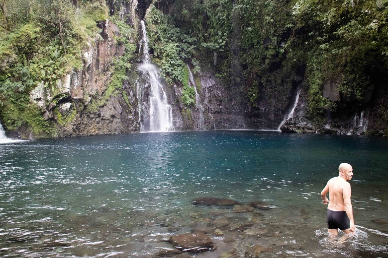 Ein paar Tage etwas ruhiger. Wir verabschieden uns aus dem Norden mit einem Besuch bei zwei Wasserfällen. Treffen dabei einen Reunionaisen (keine Ahnung ob das so stimmt), der uns glücklicherweise das Weglein zum ersten Becken zeigt. Ohne ihn hätten wir das wohl nicht gefunden. Er erklärt uns Heilpflanzen und schwärmt von dem blauen Wasser. Wie in "Le Grand bleu". Der Kult-Film der Apneisten. Als wir ihm sagen, dass wir Apneisten seien, flippt er fast aus... sehr herzlich und freundlich die Leute hier!