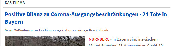 Aus der Forderung der Leopoldina heute (fordern einen 3-wöchigen Shutdown): “DieCoronavirus-Pandemie hat die Welt, wie wir sie kennen, innerhalb kürzester Zeit grundlegend verändert. Wenn Gesellschaft, Wirtschaft, Politik und Wissenschaft nun an einem Strang ziehen und zielgerichtet auch zu unkonventionellen Lösungen bereit sind, werden wir auch diese Herausforderung meistern. Die Leopoldina wird diesen Prozess aktiv begleiten.„